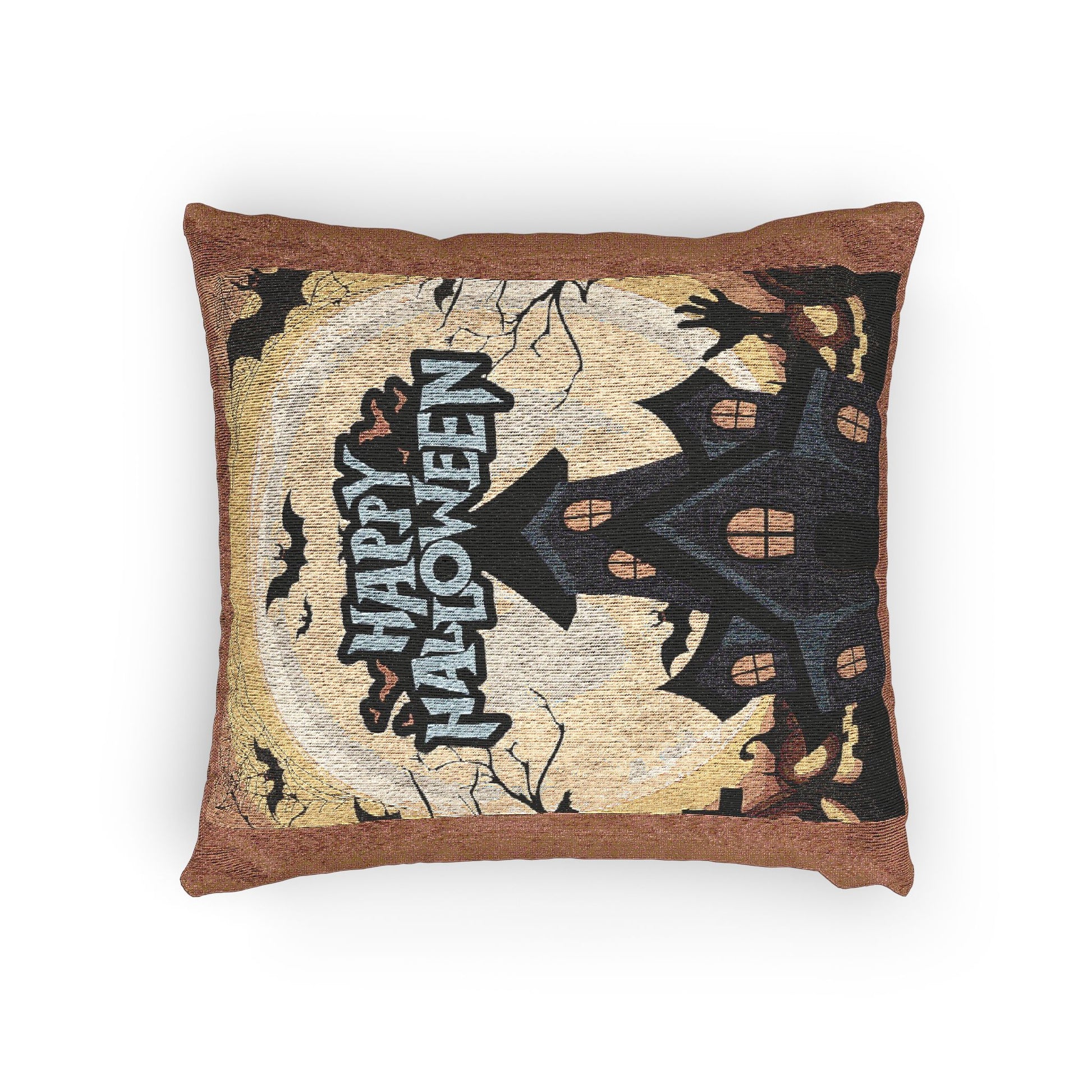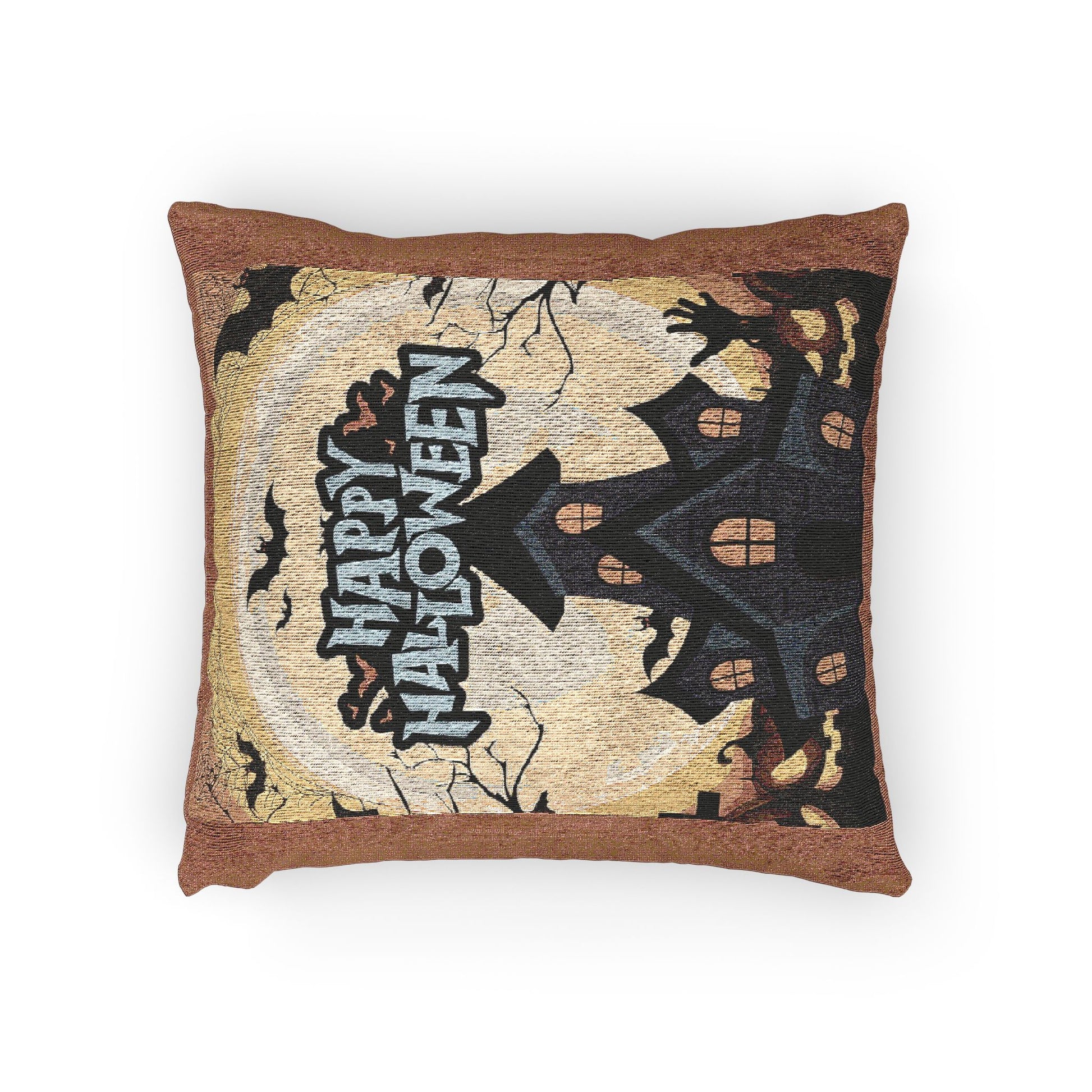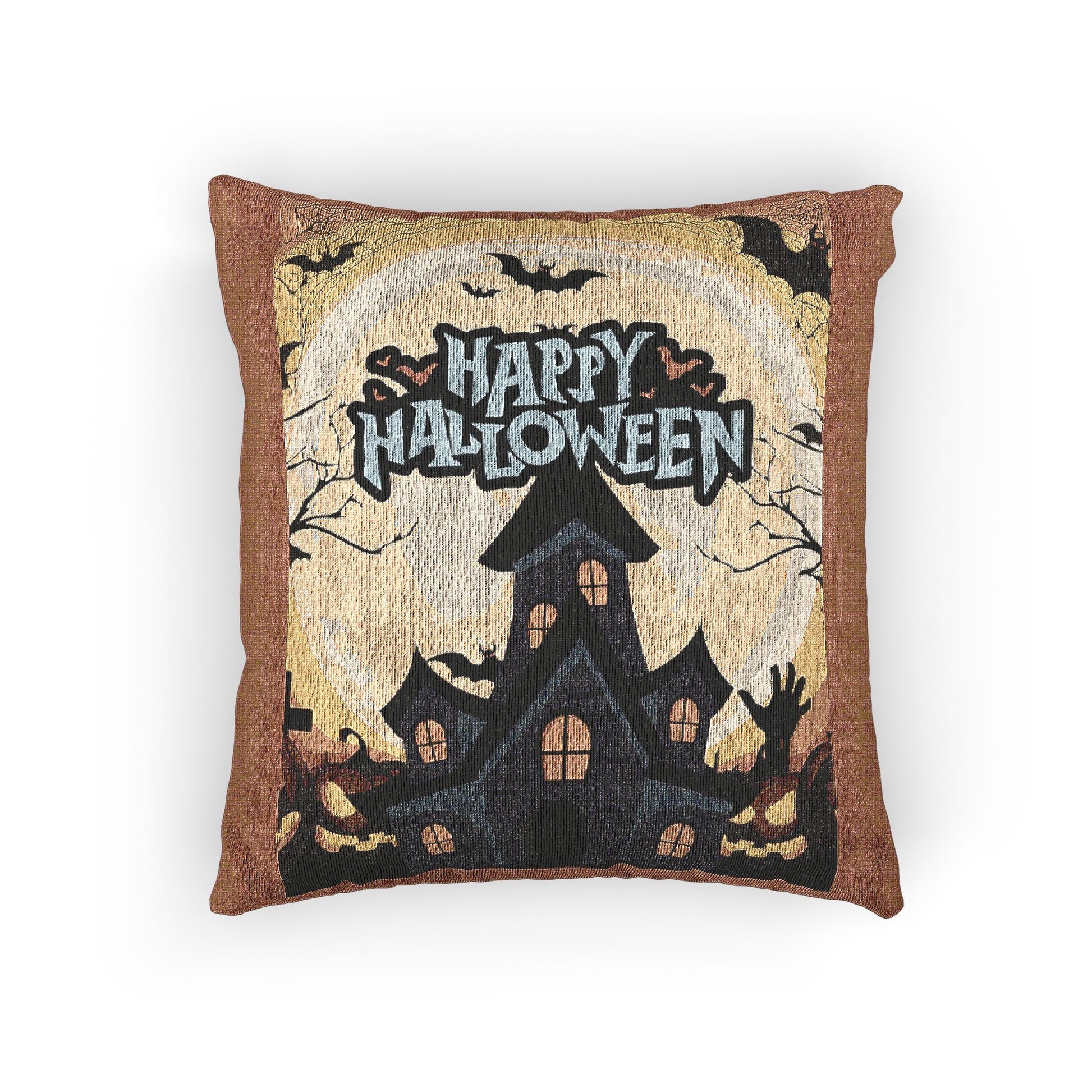 Halloween Woven Pillow, Spooky Decor, Festive Home Accent, Cozy Fall Decor, Haunted House Cushion