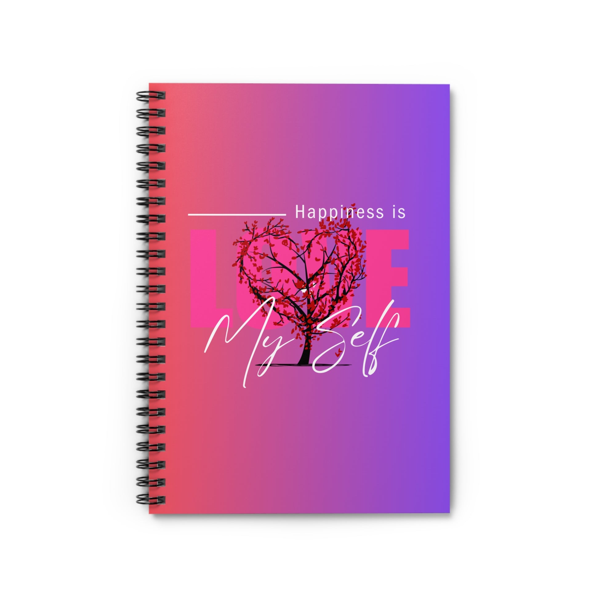 Inspirational Spiral Notebook - Happiness is Love My Self, Journal for Self-Reflection, Vegan Gift, Creative Writing, Motivation Tool