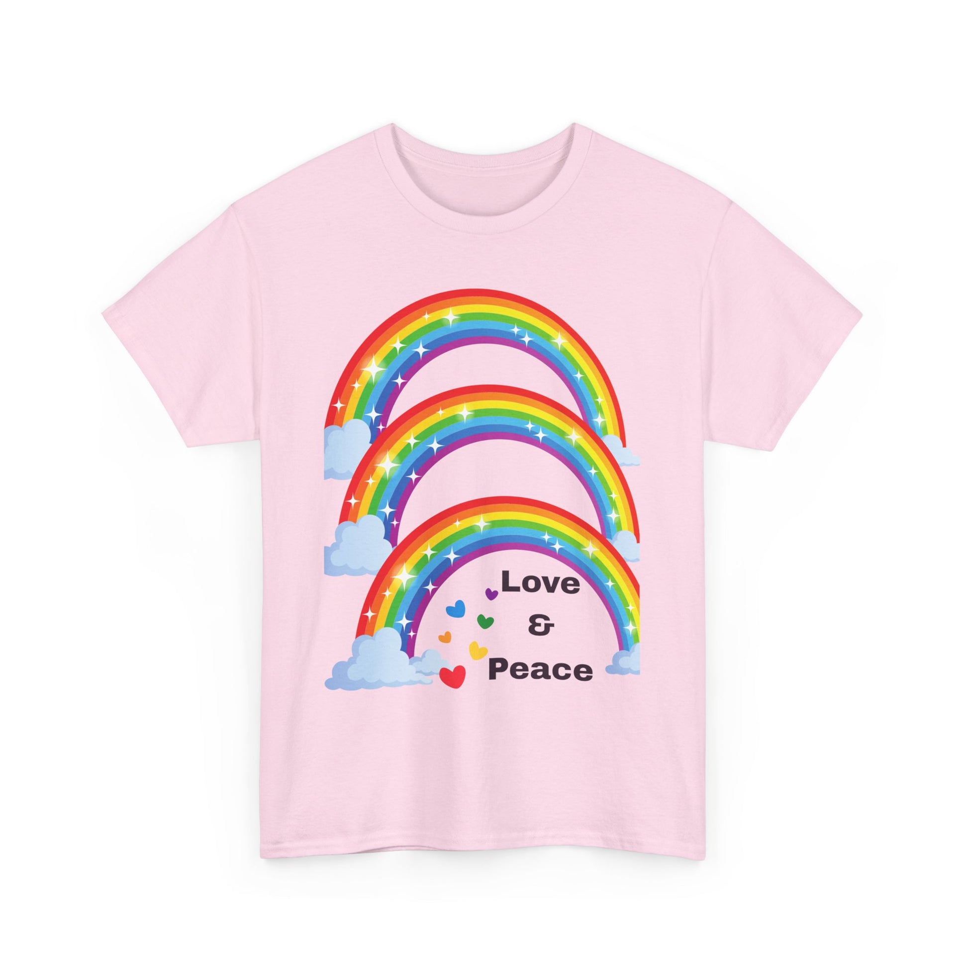 Embrace positivity and vibrancy with this unisex heavy cotton tee. Featuring a lively design of colorful rainbows and the words 'Love & Peace', this shirt radiates a cheerful vibe perfect for casual gatherings or relaxed days at home. Ideal for free spirits, activists, and anyone who loves to spread joy, this tee is a versatile addition to any wardrobe. It’s perfect for occasions like Pride Month, Earth Day, or simply as a statement piece to celebrate love and unity. Wear it as a reminder of hope and acceptance, no matter where you go!